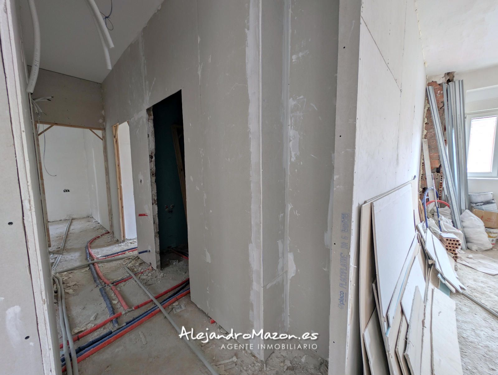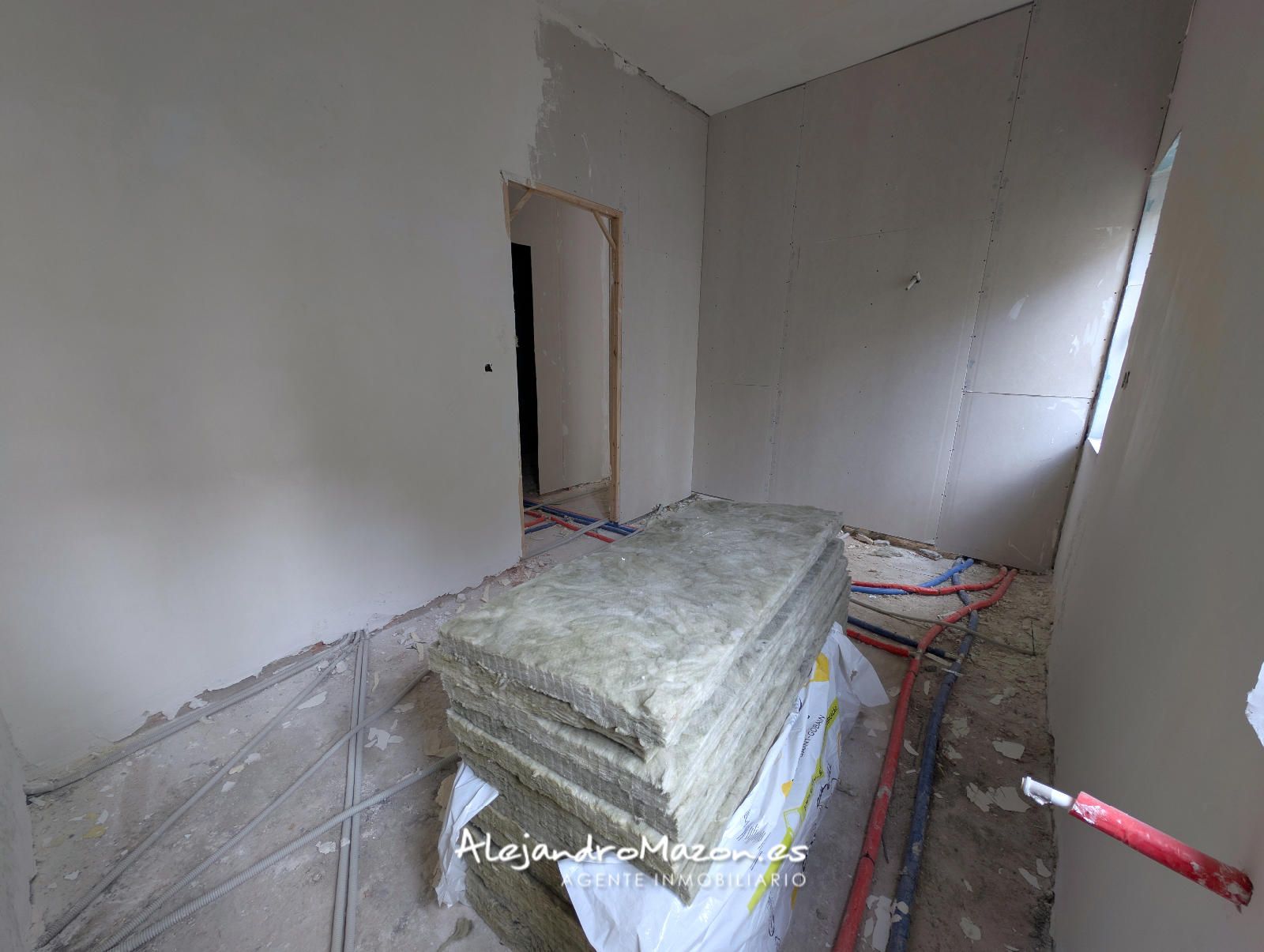 • Distribución: Ya están los tabiques casi todos de ladrillo, pero acabados en pladur y los nuevos de pladur con aislamiento térmico/acústico de lana de roca.