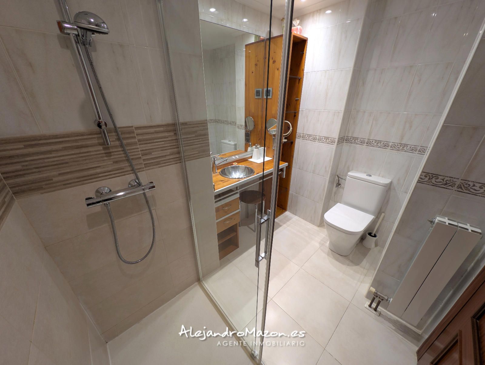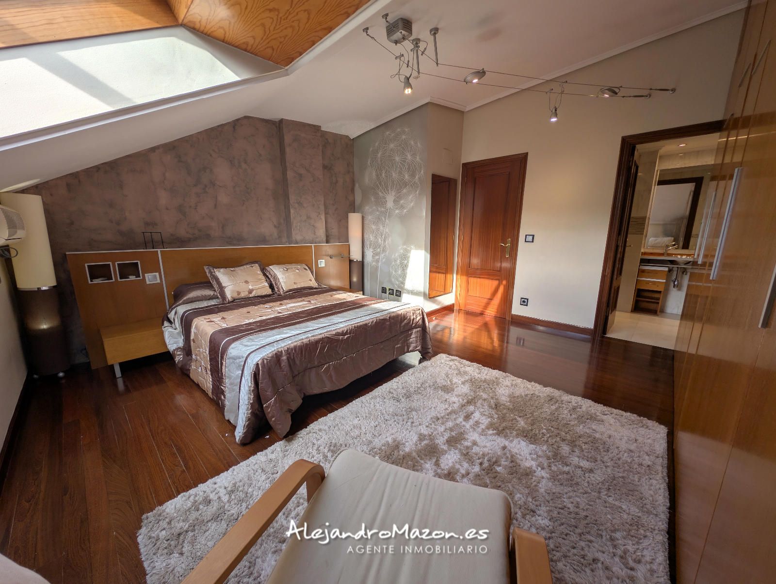 La planta bajo cubierta alberga el dormitorio principal, con más de 20 m², armario empotrado de pared a pared y un baño privado con ducha.